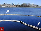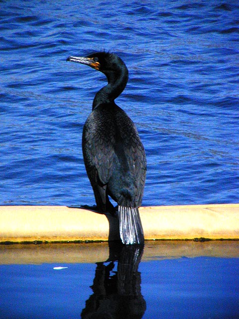i could see whole river banks dotted with people outside enjoying the sun. i stopped to take some photos of a cormorant sunning itself on a floating oil barrier on the river. all went well until i looked off to the side and saw this MONSTER.