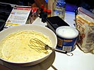 i was going to crockpot the whole thing, throwing in a can of whole tomatoes, few cups of beef broth (actually one beef, one chicken, i got the wrong can), pearl barley, chopped garlic, chopped peeled carrots, a can of mushrooms, a jar of pearl onions, sugar, bay leaf, thyme, pepper, and last but not least, chopped beef. the crockpot was actually taking too long, even after i cranked it up on high, so i switched tactics midway through and went with the medium-low stovetop simmering for an hour. i also took the opportunity to use my pound cake mix and put a loaf in the oven, baking time one hour as well.