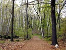 i didn't see or hear any wildlife at the vernal pool. along the shore, fern coils were starting to unfurl. the pool definitely had a mysterious aura about it though, the water was smokey and motionless, with the tree filtered sunlight hitting the surface.