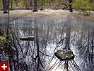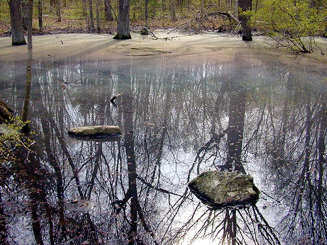 i flipped on my gps prior to venturing into yet another forest. the place was pretty buggy, and there were a few times when it seemed like something flew into my eye. i was curious about the vernal pool highlighted on the map, and made a beeline towards it.
