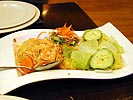 after the arboretum, we made a search for food. i had some idea of maybe some kind of vietnamese/thai fusion in the heart of busy allston center, but first we had to get there, and that involved some creative hunch driving, but we finally made it. unfortunately, close to 8pm, finding a legal parking space in allston is next to impossible, so we opted to go to sweet chili in inman square instead, where parking wasn't an issue since renata had a residency sticker on her car, but we found a space a few yards from the restaurant anyway, shear luck. sweet chili was surprisingly empty for some strange reason, but more people did arrive later in the evening, probably coming back from enjoying the nice weather all the day. we got the spicy mango salad, which was an interesting salad but its hot flavor surprised me a bit. the mango curry was excellent though, definitely worth a try next time. the tom yum seafood noodle soup though wasn't what i ordered the last time i came to sweet chili, a little too seafood for my taste, but still tasty.
