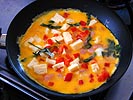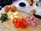 i finished off the programming before i made lunch, an omelette. three eggs, slices of ham, cheese, red pepper, and basil. i still think i have a lot to learn before i make a perfect omelette. the cheese didn't quite melt, but it was a tasty affair.