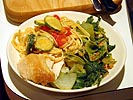 lunch: rice noodles sprinkled with garlic tabasco sauce.