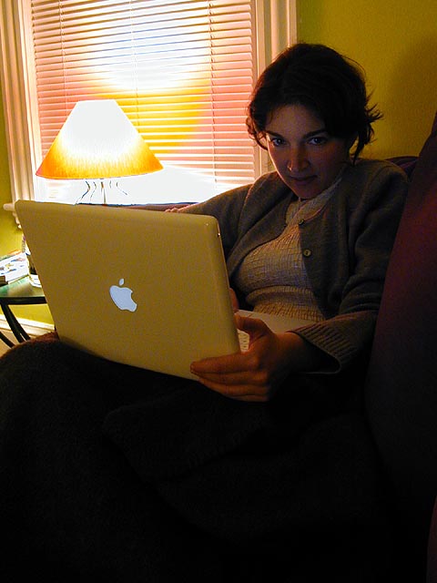 how i spent the rest of my afternoon: after some cookie dough ice cream, i lounged on the couch in the living room (underneath that grey blanket), watching television (godfather 2), surfing the web on my wireless ibook (feeling warm on my lap), then slowly drifted off to sleep. my mother called me later in the afternoon, i don't remember the conversation, i was still groggy from sleeping.