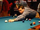 i could never really get myself to plunk change into those things because i always felt like it was a waste of money. after 30 minutes we went back upstairs, our table still not ready. we waited some more before our number was called up, a table all the way in the back of the establishment, perhaps the pariah table where the ugly pool players get sent to. after confessing my absolute lack of pool skills, i was put on the same team as dan while manny and larry formed the opposing team.