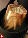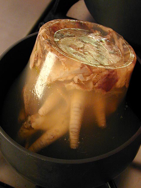 for lunch, i had some rice noodle in a broth of homemade beef soup. the stew was in the form of a jello, which i had to thaw out over the stove. there were also chicken feet in the stew, which made the whole gelatin mold look like something from a horror movie. i had it with some dong-tsai and worcestershire sauce.