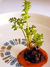 i'm not particularly worried, mints, like tomatoes, don't have a lot of pests (mints are probably hardier, tomatoes can get all sorts of plant diseases). my little carrot top that i've kept in a plate full of water is growing nicely as well. no good can come of this though, not like i can regrow the original carrot. however, this is the poor man's plant, it's pretty much reusing what i'd normally discard, somehow i remember doing this either in elementary school as part of a science experiment or i did it at home as a little kid.