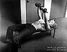 next i stopped by joie de vivre, looking for presents but ended up just getting a marilyn monroe postcard for myself (the one where she's pumping iron). i went to the bank and deposited andrew's rent check for the month of june, then went to cvs to see if they have this month's issue of money magazine, an article about real estate that ranks cambridge as having the highest rate of property value growth within the past 5 years (this is nationwide, not just in massachusetts), followed closely by somerville in second place. cvs didn't have the magazine, but coming back i went to brooks pharmacy and they had it. i went home, following a woman wearing red pants. i got my checkbook and went back to nomad, where the same lovely chesty girl and another employee helped me get my secret gardens tickets.