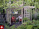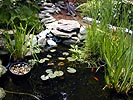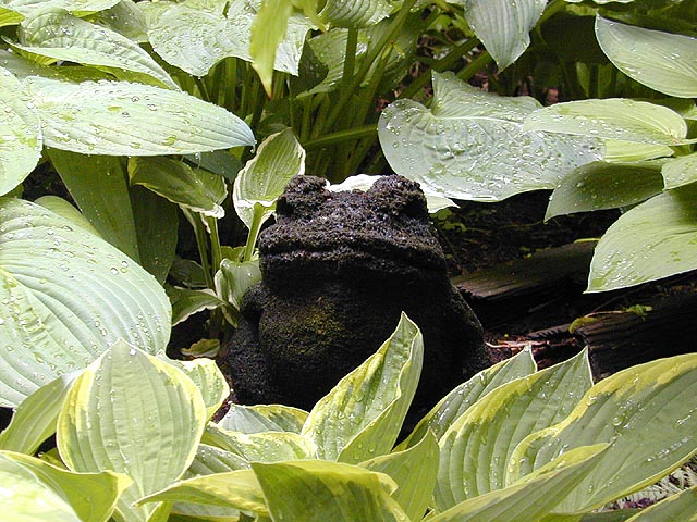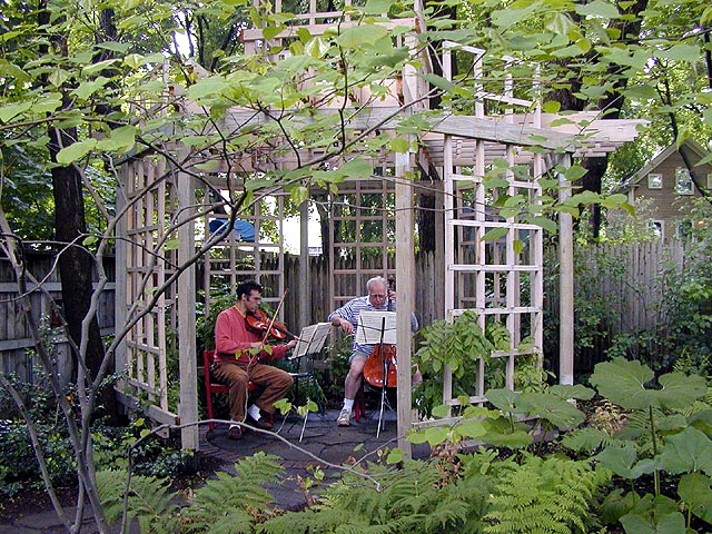 after brattle street, we saw another garden nearby on longfellow street. a nice garden but after just seeing brattle street, it paled in comparison. the stone toad amidst a sea of hostas was a cute touch though. next we drove down to holworthy street besides the mt.auburn star market, the site of my favorite garden from last year. as if trying to outdo last year, this year they had live musicians playing at a corner of the garden underneath a gazebo.