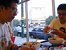 by evening (or summer evening, as it was still bright outside), my mother came by my place to pick me up. we went back to belmont to rendezvous with my father and suhan. suhan, the college aged son of a family friend, has visited boston each the summer for the past few years (i took him down to NYC 2 years ago, his first visit). he's here this year on a mission from his father to visit the few indian reservation casinos in the local area and turn $3000 into something more: his father essentially sent him to go gamble, which kind of makes me scratch my head about what kind of child rearing technique that is. anyway, we all went to the 88 supermarket, getting dinner at the attached food court before doing some grocery shopping. i had the tom yum noodle soup with chicken, quite delicious, but on a hot day like today eating something so spicy, it was making me sweat buckets, even in the air conditioned food court. the place was packed with mostly asians of all ethnicity, which made me feel weird, as i have a love/hate relationship with members of my own race.