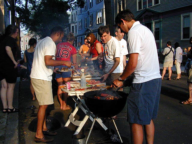 (especially that part where a female spectator on the green monster seats got beamed in the throat with a flying homerun baseball), before we went our separate ways. i went across the street to star market to get a 2 litre bottle of raspberry ginger ale, my contribution to the block party that would soon be happening. it was actually supposed to be last sunday, but got postponed due to the rain. a segment of my street was blocked off and all the neighbors came out for a barbecue and to meet one another. there were people who'd lived in the area for decades, parents with small (and not so small) children, and new people (like myself) who've recently moved to the neighborhood. i actually had a chance to go to the block party last year, but i had just moved in and wasn't in the mood to meet anyone quite just yet. a year later, not much has changed. after i had a few cups of raspberry ginger ale, i went back home.