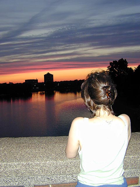 a couple sitting on a bench asked if we could take a photo of them. i quickly snatched the camera (a regular model, i made it known that i was outraged it wasn't digital) and took their photo, informing them that that was probably the best photo on the entire roll, then renata and i quickly walked away. we went around the charles river, and surprisingly suffering no mosquito bites despite it being the optimal mosquito feeding time. i think the trick was we kept on moving, never stopping long enough for mosquitoes to latch onto us. i had renata lead the whole way to test her navigation skills. we made it all the way back out from the charles river, before i led again.