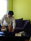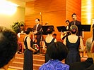 after the ceremony, there was a reception with chinese pastries (not to be confused with the actual reception dinner later in the evening). i had a small custard pie, my first food of the day. there was also some entertainment in the form of a barbershop quartet (in which the groom tyrone is a member), but my family decided to leave before any of that craziness could ensue. my sister took off for her child care gig while my parents came over to my place in cambridge to wait out the day before the actual reception started.