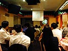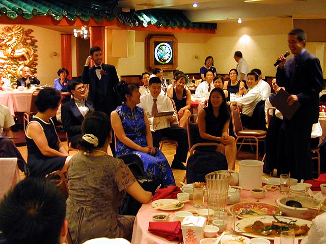 the highlight of the evening had to be towards the end, when the computer slideshow was finally projected onto two pull down screens on either side of the room. the first section was just photos of liwen and tyrone together with "how sweet it is to be loved by you" playing in the background. the second section was just photos of families and friends, with "circle of friends" as the background music. though i sort of openly mocked the slideshow, after seeing it, it's actually a very good idea, sort of encapsulate their whole relationship. i envied their large extended network of friends and families, yet at the same time i was happy to see how important photos are in capturing memories, and reaffirmed by pledge to taking amazingly embarassing photos of my own friends and families. the third and final part of the slideshow was the "in memory" section, no music, of the people who've died in recent years. parents, grandparents, friends, with the final photo being that of MY OWN FAMILY, an old snapshot from 1992 (which meant i was unrecognizeable). i saw it and laughed, only to realize that everyone else was dead serious. obviously a mix-up which only i could see the humor in. hannah, who sat next to me, said with great concern, "you mean that whole family died? that's so sad." "HANNAH, THAT'S MY FAMILY! I'M STILL HERE!" i told her, "TOUCH ME! I'M NOT A GHOST!"