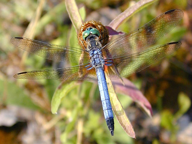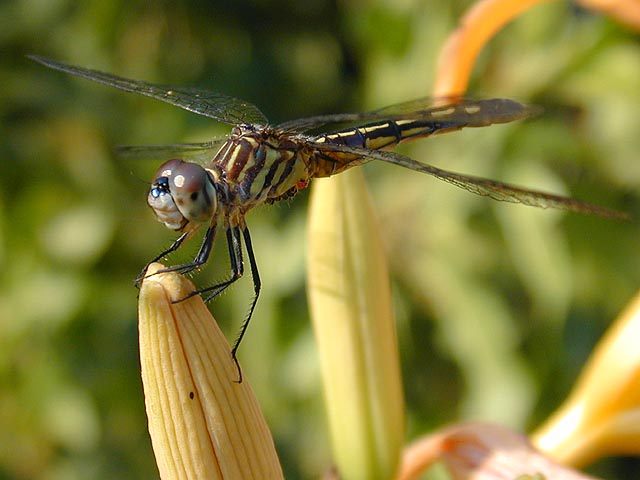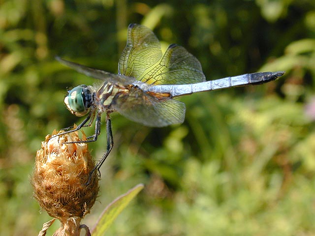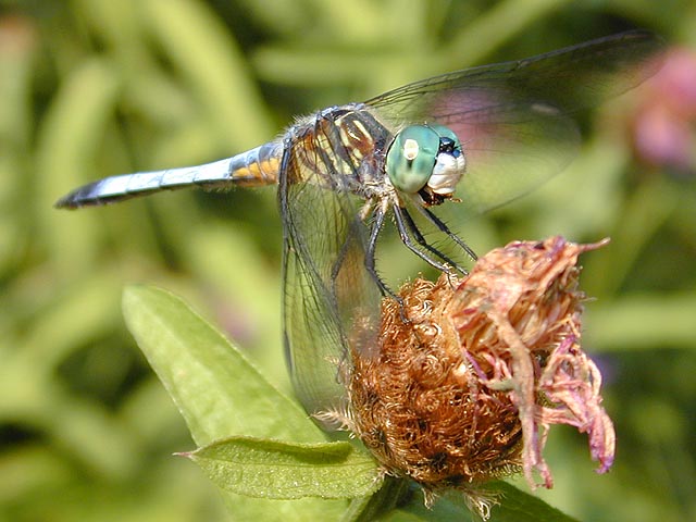 there was also a lot of dragonfly activities. no red meadowhawks (they come later in the season), but i did see a whitetail, followed by many blue dashers, both males and females. i even caught sight of an ebony jewelwing from a distance, one of the prettiest damselflies you could ever see, metallic green with black wings. tried in vain to get a better photo, walking through thorny bushes and poison ivy in my shorts, but jewelwings are timid insects, and flew away whenever i got close. i didn't see much butterfly activities, despite all the flowers. the most conspicuous lepidoptera were the cabbage whites. i looked for signs of monarchs on milkweeds but didn't see anything.