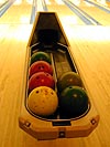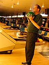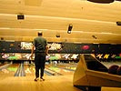 a father daughter team was bowling on our left, a mildly professional bowler did his exercises to our right (his final score was something like 198), and further down a group of asians were yucking it up on a tuesday afternoon. the father daughter were playing kiddy bowl, where they put up rubber barriers along the edges of the lane so it's impossible to get a gutter ball. bruce and i played 4 frames. he was able to break 100 on every single frame, while i was lucky to break 60.
