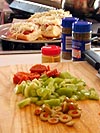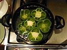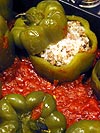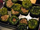 at one point during the cooking, i had three stovetops operating simultaneously, one was cooking the sauce, one was cooking the stuffing, and the third was boiling the pepper shells. what i thought would take an hour to prepare turned out to take 3 hours (including an hour to bake the stuffed peppers in the oven).