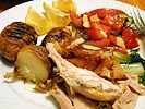 "do you think we can invite kay?" renata asked. "sure," i said. the marinated chicken we put on a shallow tray, tin foil on the bottom and a wall made to keep the juices from flowing out.