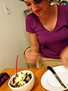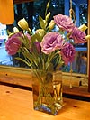 renata told me right away when i got there that she had no intentions of running in the rainstorm, now developing into a thunderstorm. the whole point of tonight's meeting was more about renata's first time running than it was about dinner, and even after some motivational exchanges, she still couldn't be persuaded to go out running. so we decided to start making dinner early after renata put the lisianthus into a rectangular vase.