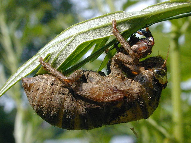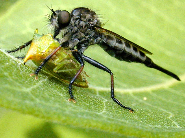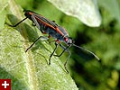 i rode out to the claypit pond again in belmont (last time i was there was last week) to see if i could have some more luck getting insect photos. i went to the large patch of milkweed i saw from last time. i was disappointed to see that a lot of the flowers were already wilting, which meant there was hardly any insect activities. the thing with insect photography is you have to have patience, and you have to know where to look. it's almost like a game of "where's waldo?" while trying to pick out the bugs. i saw a robberfly with a treehopper impaled on its piercing mouthpart. while it was busy feeding (i could see its abdomen moving in and out like a balloon), i took a few snapshots. robberflies make good subjects because they're not very afraid since they have a predator mentality. that doesn't explain dragonflies though, which are predators as well, but sometimes they're difficult to get close enough to get good photos. i saw my first cicada shell of the season, then later heard the familiar buzzing up in the trees. i finally figured out what those red bugs were from last weekend, they're actually boxelder bugs, i was able to identify them from an adult specimen.