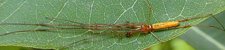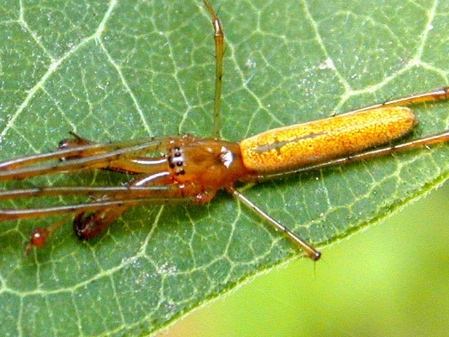 the one new insect i saw was an elongated long-jawed orb weaver. i didn't know what it was at first, but i spotted it from a few feet away resting on a leaf.