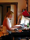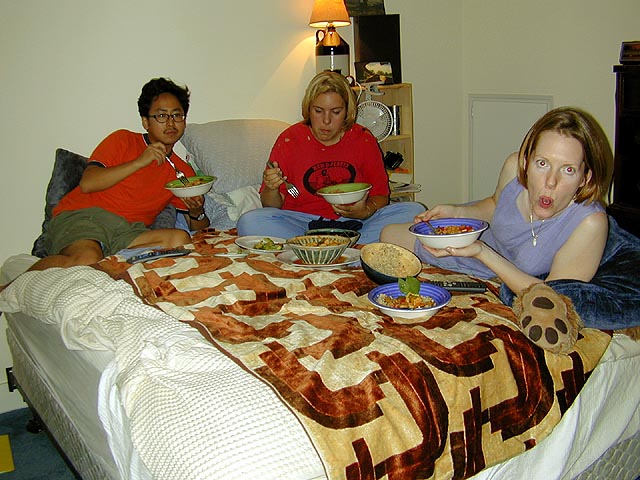 we ate on brooke's bed while watching best in show on dvd, the bowl of curry balancing dangerously in the center. brooke quickly fell asleep afterwards. when the movie finished playing, amelia and mieke left, while brooke went back to bed.