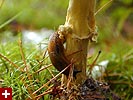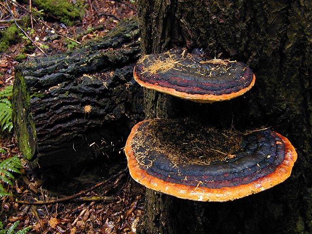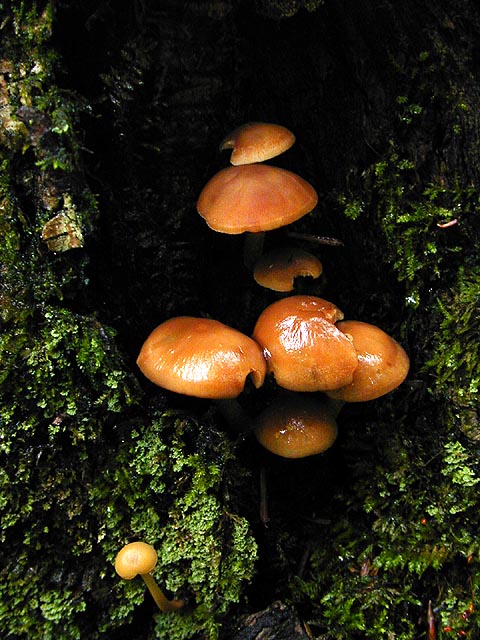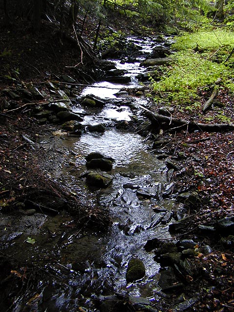 i walked with an umbrella in one hand, the gps in the other (i'd later wear it as a necklace), with a bag carrying all my photo equipment. i walked along the trail deeper and deeper into the forest. there was a moment of nervousness when i cut through a neighbor's backyard, very much aware of the "no tresspassing" sign. from a distance i saw a mother turkey (or was it a pheasant?) with her brood of young turkeys cautiously crossing a field. eventually open-skied forests turned to darker canopies. the path i was taking followed a brook beneath the forest canopy. the forest floor was filled with rotting tree branches, lush ferns, and mushrooms. there wasn't much else to see in terms of nature except for the mushrooms, which seem to thrive with great abundance here in these woods.