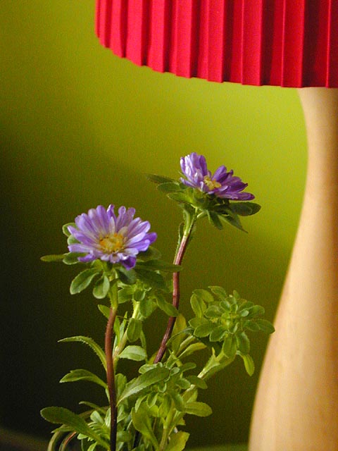 at porter square i bought a bouquet of purple asters ($3), the special occasional being that mandy, my former coworker from srm who moved to NYC (010827) right when she started to get interesting but has now "transitioned" back to boston, was coming over for dinner after she got out from work.