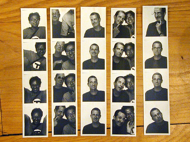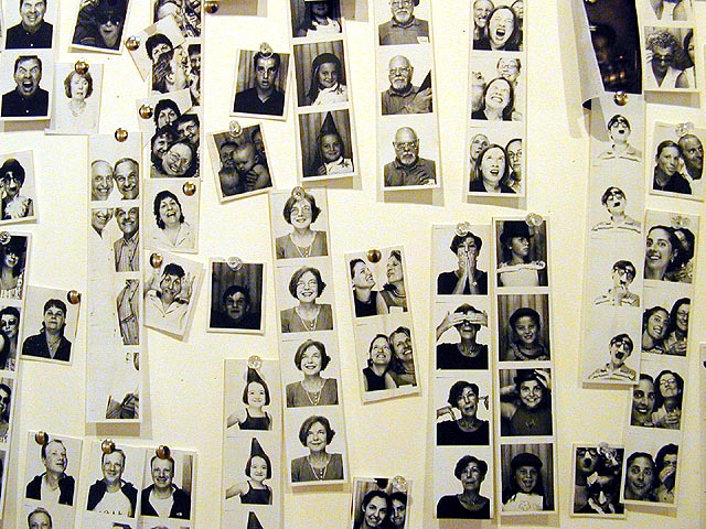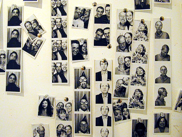 a little bit before noon bruce came over and we left together to go to the griffin museum of photography in winchester, to see an exhibit on photobooth photos. i made a mix cd for the car trip over, skipping songs when i got tired of listening to them. the mix has a heavy oldies influence (e.g. diana ross, smokey robinson) with a touch of disco/techo flava. when we got to the museum, there didn't seem to be anybody around, so we just helped ourselves to the exhibit. not only was there a large collection of photobooth snapshots, but there was also a $2 photobooth and a wall for people to add their own photos. next to the machine was a wicker basket full of props (e.g. funny glasses, pirate's hat), for those who'd like to dress up for their photos.