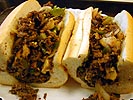 feeling hungry (despite the fact that i had a dinner party to go to when i returned home), julie and i searched for a place to eat in watertown center. after she got some money, we went to this little sub shop across the street from the fire station. the guy working behind the counter could've been a male model, julie confirmed this after we left the place and told me, "that guy was hot!" i ordered a steak and cheese combo, julie had some sort of barbecue chicken sandwich.