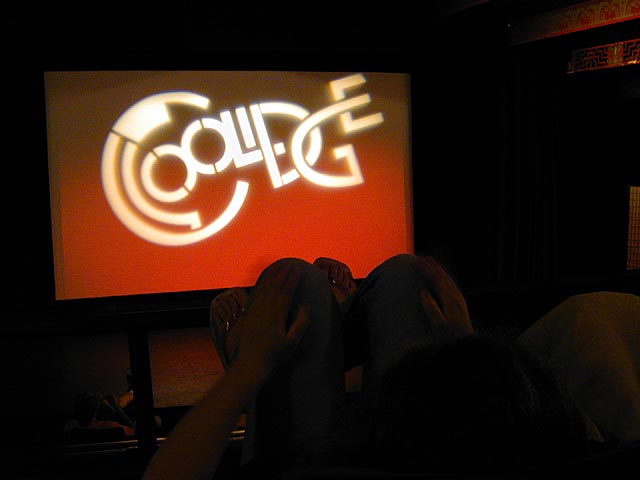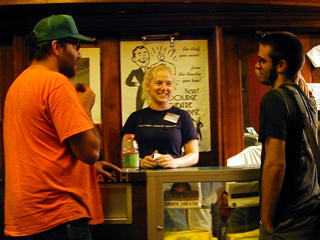 elias, future coolidge corner theatre worker, was able to get dan and i into the joint for free through his connections. outside, a long line snaked down the alley way, kids waiting to go see donny darko, a piece of cinema that to this day still boggles my mind as to how people could love it. we got our snacks then went upstairs. i'm always so curious about the kind of people who go to these midnight showings, like-minded individuals like myself. the movie brought back some memories, one of the first few r-rated movies i saw in the 80's. it wasn't my first time seeing it since then (it's played on cable many times), but i haven't seen it on the big-screen in ages.