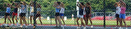 after the code delivery, i had some leftover dumplings for lunch while watching monsoon wedding, before getting in touch with bruce for some light hearted naturing on this very hot day (he had wanted to go out earlier when it was cooler, but i had work to do for a change, that's why we didn't). i ate 2 of my krispy kreme donuts, leaving one for bruce when he arrived. we decided to try the habitat wildlife sanctuary in belmont instead of fresh pond, bruce having never been there before. the drive through my hometown was nostalgic, and catching a glimpse of the belmont high school cheerleaders practicing out by the track field made an otherwise dull thursday a little bit more interesting. bruce seemed to be amused upon seeing actual cheerleaders, having just recently watched bring it on on dvd.