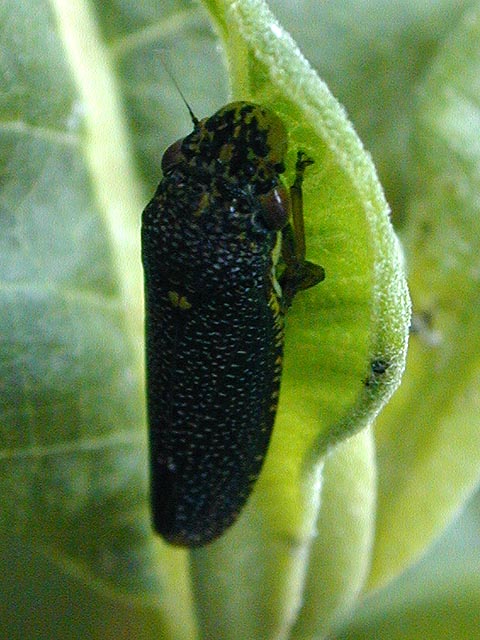 i did see a black variant of a leafhopper, as well as a planthopper (i always like those, they look just like little leaves, down to the vein patterns), and a stink bug. so a lot of bugs, but no classic insects. there was a lot of milkweed, and bruce and i made a cursory search, but we didn't find any monarch caterpillars.