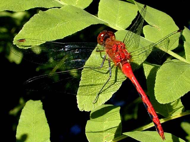i was able to impress bruce when i got a red meadowhawk butterfly to land on my finger, like i was the bug whisperer. he was unsuccessful in his attempts to get them to do the same thing, going around the edge of the pond, chasing meadowhawks with his index finger outstretched for them to perch on. meadowhawks are easy dragonflies because they don't seem to be too afraid of people, landing on us without any regards to their own safety. because there were so many dragonflies around the pond, that area was remarkably free of mosquitoes, which can't be said later on when we entered deeper into the forest.
