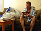 when andrew left to go to the galleria mall, joel dropped by with his girlfriend sarah and his friend/roommate sean. they had just come back from a $50/pop earwax candling in boston, each person describing the unique experience. after they left, i went over to bruce's place to deliver his present.