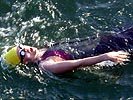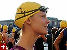in reality, swimmers just go around the perimeter of the world trade center, which is still a good distance, but nothing like i imagined. i got myself in a corner overlooking the water and waited for eliza's heat (identified by the number 3 on their caps) to swim by.