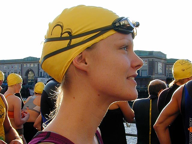 i snapped awake at 6am so i could go see eliza compete in her second monster.com triathlon. i remember ed and dan paquin doing it back at srm, and i remember seeing the photos of all the yellow heads bobbing in boston harbor.