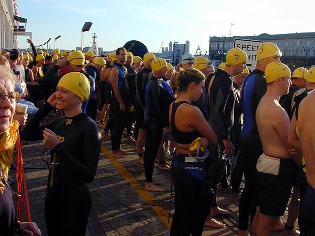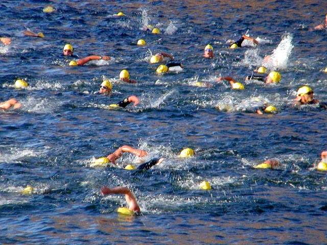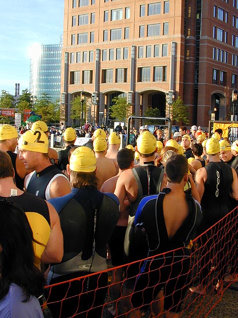 the first leg of the triathlon involves swimming the boston harbor, which sounds harder than it actually is: in my mind i pictured a sea of people swimming the whole expanse of the harbor, miles and miles of water to traverse.