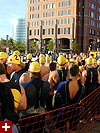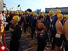 as soon as i got into boston, i had to run down to the world trade center in order to make it in time for the race. by the time i got there, all the swimmers were already lined up in their wetsuit and yellow swimcap, ready to walk down the dock and into the cold boston harbor for the swim leg of the triathlon. i spotted eliza waiting in line, we chatted briefly before i let her go and went to find a good vantage point to shoot some photos.