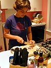 mandy alerted me via instant messaging that she wouldn't be able to make it tonight, still helping her sister prior to her sister's departure for 2 week european vacation. julie showed up at around 7:30pm, bringing with her the electric wok and bags of ingredients, tonight being her night to do the cooking.