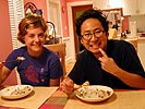 tonight's recipe, some sort of thai basil chicken with rice. manny came by briefly to give me his old light fixture that i said i liked so much, as well as a linen lantern his sister maureen got me from the philippines, along with the latest 2004 copy of the ikea catalog (y'all be jealous now!). klea showed up around 8pm (our old friend from the screen house), back in town from new york city to do some minor repair work on her somerville house before renting it out again. she had dinner plans already, and could only stay for a little bit before heading back out. by that time the food was already done and we ate it at the dining table, counting down the time before 9pm, when boy meets boy would begin. klea left soon after that.