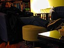 even though it was just the two of us, julie and i still made a lot of noise while watching the shows, particularly boy meets boy, where we didn't believe who the leading man ended up picking. queer eye was interesting, but it was a weak episode, a lot of improvements were casually looked over, like when he got a haircut, or when they tried to teach him how to dance. we had ice cream with hot fudge during that show. afterwards, we watched the daily show, both of us falling asleep in our respective couch/chair. julie left soon afterwards.