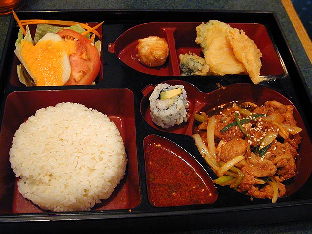 i remember i wasn't too impressed with my last visit, the quality of the suishiya box lunch steadily decreased with each successive visit. this particular occasion was perhaps the worst box lunch special to date: the rice serving was double the normal size to make up for the lack of food, the pork bulgoki was watery and lacking in proper flavor, and what used to be a shrimp tempura is now visibly absent. all this for $9.40, another price increase. let this be a warning to all, the korean box lunch special at suishiya is no more, don't waste your money going there, it's not worth it.