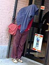 after we came out of the theatre, we both checked our cellphones for messages (i remember a time when we didn't have cellphones, the good old days). julie stood in the doorway of the theatre underneath her jacket making a phone to mark hickey. we went to SBI above the harvard square staples to find film for julie's 8mm video camera. the cost of the film plus development was $30, but to have it transferred over to videotape (not even dvd) was $70, so it'd cost $100 just to get a roll made so people could see it. i told her she should just get a digital video camera for the cost of a few 8mm developments & transfers. we sneered at the sudden september influx of students then made a quick stop at finangle a bagel then the body shop before we went back to our respective homes.