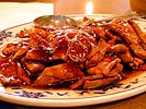 i figured i wanted something exotic, so i got the "sesame oil hip flowers," which is chinese euphemism for pork intestines. i also ordered a plate of smelling tofu, but the waitress told me they were out today (no!). when my order finally arrived, it looked nothing like i imagined it. it looked and tasted like a big plate of liver, sliced in such a way to resemble flowers in the broadest of definition. here on a monday afternoon in chinatown, i was experiencing my own private fear factor. not wanting anything to go to waste, i ended up eating everything, but it was a real struggle downing so much pork intestines. after lunch, i went to a chinese supermarket and got some candy to cover up the taste of pig guts in my mouth.
