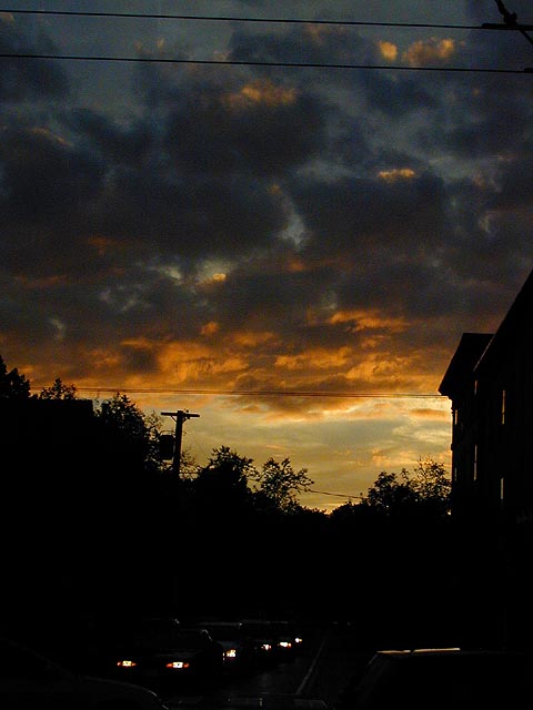 today was the start of autumn but i hardly noticed, except it seems to be getting darker earlier and earlier these days. the weather was overcasted and rainy all day, but by the time i left for home, the clouds were rolling away, revealing a very dramatic sunset. i called alex when i got to porter square, since he said he wanted to come over to give me some stuff and to test a media card reader. i was surprised when i heard he hadn't left his place in malden yet. i got home, talked to doug and dennis briefly, then went out to get some groceries. alex was already waiting outside my when i got back.