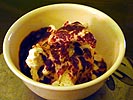 i ate another 4 tacos, surprisingly julie with my ability to eat more than my body weight. during the first commercial break, i gave her a bowl of grass jelly which she was afraid to eat. during the next commercial break, we got vanilla ice cream topped with a melted chocolate hersey bar with almonds (she forgot the jar of fudge she had at home). after the daily show, julie went home.