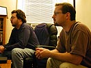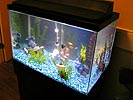 the drama that greeted me when i got there was this: dan trying to get a sick fish out of his new fish tank. it was bloated and swimming sideways, mike said maybe it had dropsy, some kind of fish disease, dan though maybe he had just overfed it. dan managed to scoop the fish out with a net and put it in a separate hospice tank, which miraculously started to get better once it was isolated from the other fishes.