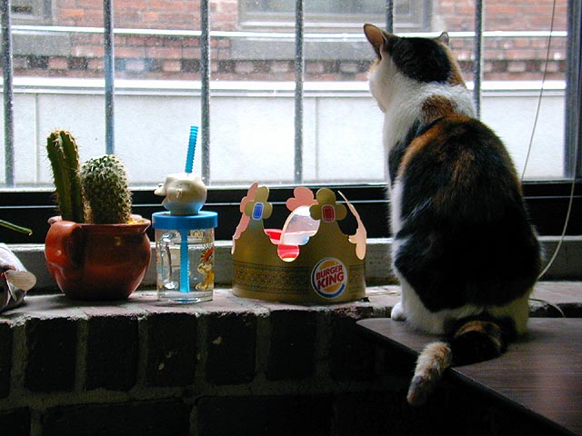 despite the great food, i could only eat a small portion of it because there was just so much. snicker the office dog cat came by once to check out what i was doing. i thought maybe he'd pester me until i fed him (just like a dog), but the cat in him left me alone to eat my food in peace. i picked away at it until i was full, then put the rest away in the fridge.