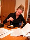 if they did lose, i didn't want to know it. if they ended up rallying and winning the game, then i'd watch game 7 tomorrow night. eliza was busy making fusilli pasta with a side of string beans. i spent the time playing with her chubby cat (who gave me some scratches and bites as souvenirs) while waiting for dinner. my second consecutive night where a lady has cooked for me! i am such a food leech!